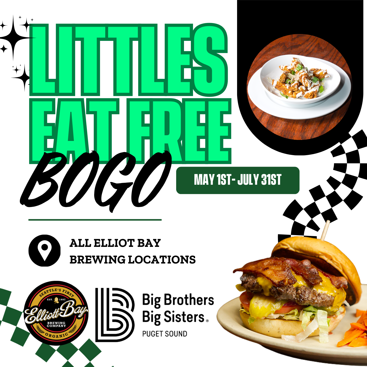 From May 1 through July 31, Bigs and Littles can enjoy a fun meal together while saving money and making memories, all at three Elliott Bay Brewery locations.